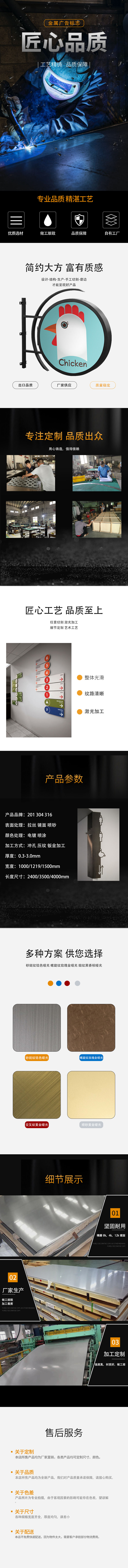 | 产品名称 | 金属视觉标识 | 可选材质 | 不锈钢、铝、铁、亚克力 |